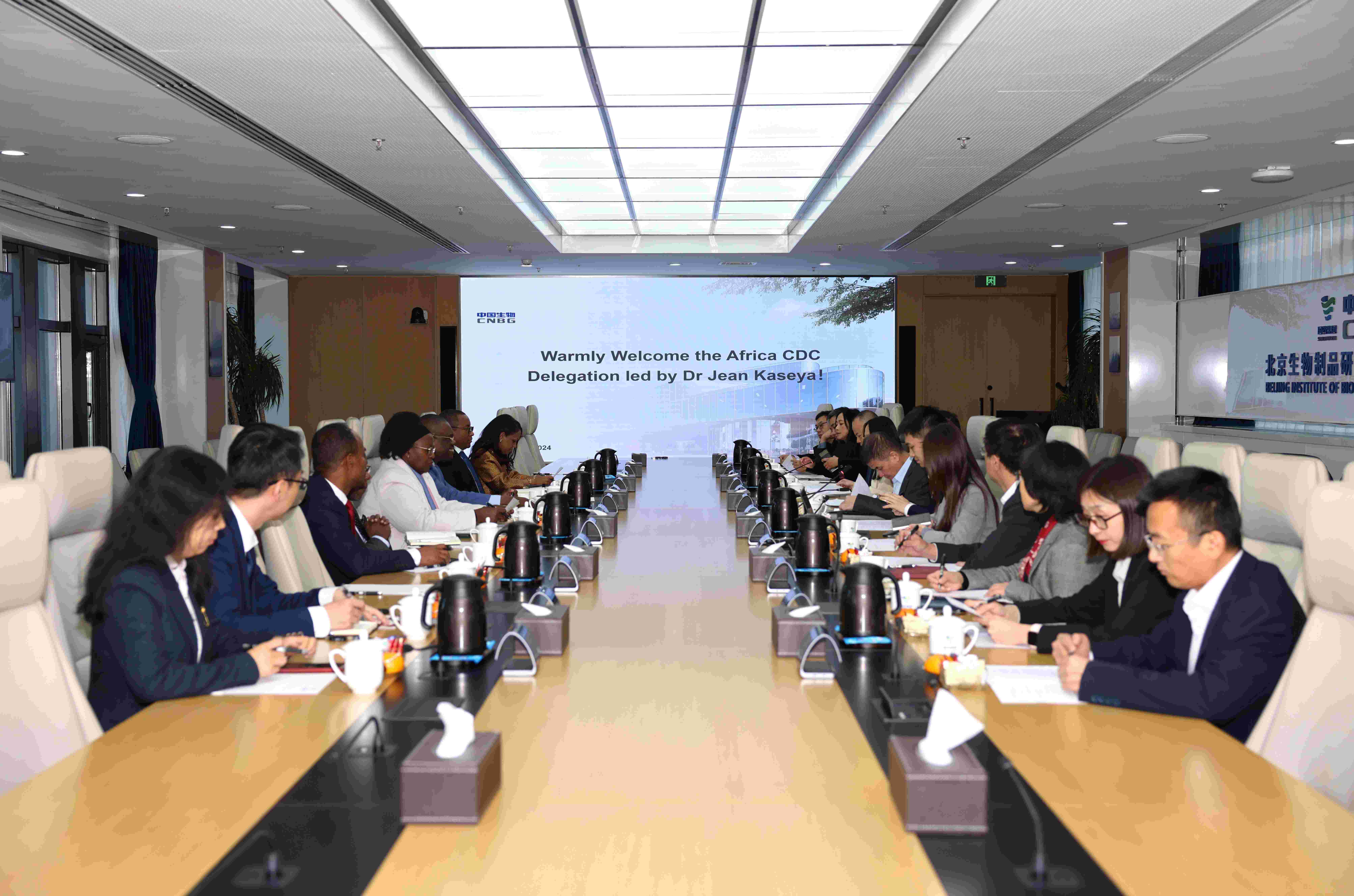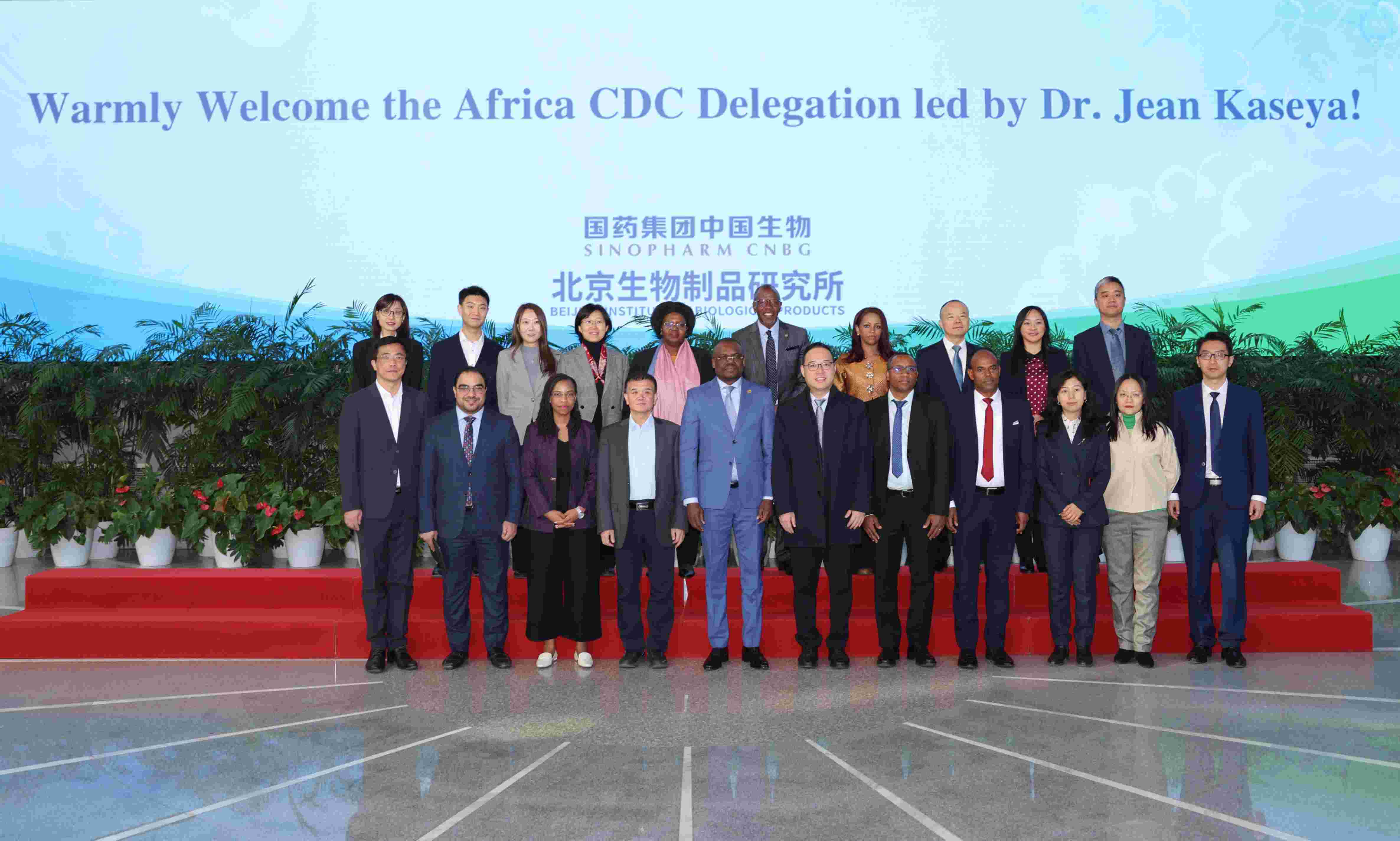 12月17日,非(fēi)洲疾病預防控製中(zhōng)心(Africa CDC)代(dài)表團(tuán)在主任(rèn)讓·卡塞亞(Jean Kaseya)的帶領下,隨同中國(guó)疾控中心全球公衛中心副研究員王(wáng)立(lì)立等一行12人來到中(zhōng)國生物草莓视频网站生物製品研究所參(cān)觀訪問。國(guó)藥集團對(duì)外合作部主任楊洋、中國生物副總裁張雲濤、中國國際醫藥衛生有限公司董事長周(zhōu)頌、草莓视频网站生物製品(pǐn)研究所黨委書(shū)記高嵩等參加活動。