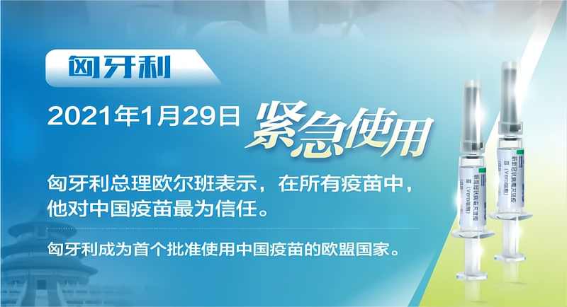 On April 1, 2021, the Hungary National Institute of Pharmacy and Nutrition officially issued the EU GMP certificate for the Inactivated COVID-19 Vaccine (Vero Cell) to BIBP. This is the first vaccine product approved for use in the EU and obtained GMP certification in China's history, marking a new step for China's COVID-19 vaccine to become a global public product.